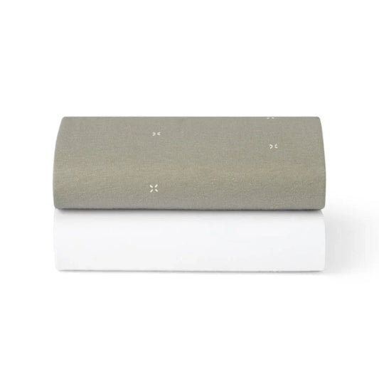Snuz Moses Basket/Pram 2 Pack Fitted Sheets | Sage/Cross
