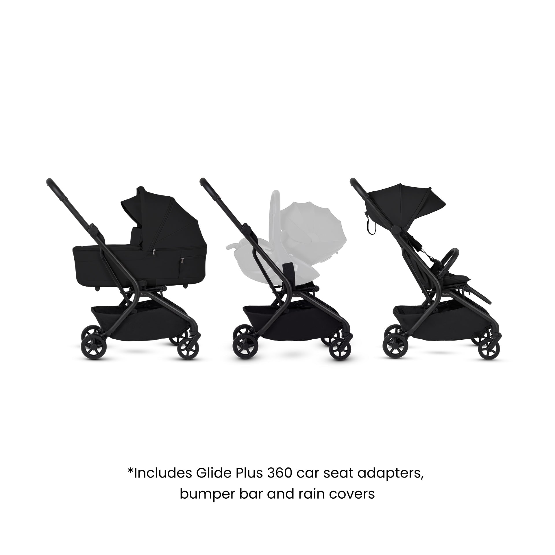 - Car seat compatible with Glide Plus 360 adapters included. Additional universal adapters sold separately to pair with a car seat of your choice