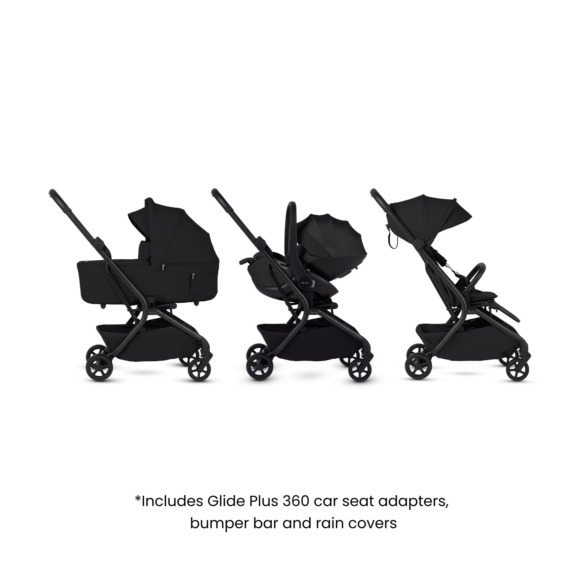 - Car seat compatible with Glide Plus 360 adapters included. Additional universal adapters sold separately to pair with a car seat of your choice