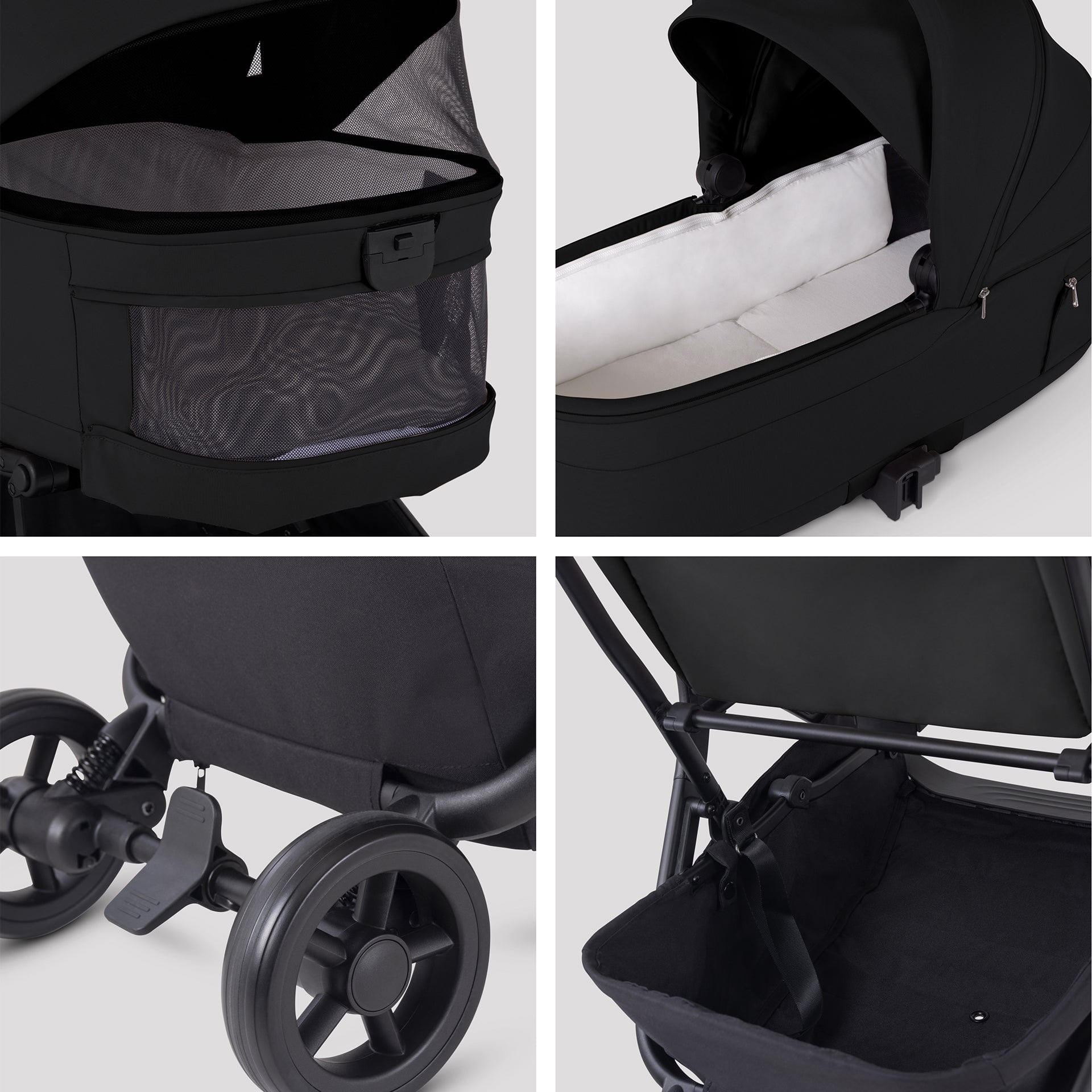 This is a carrycot unlike any other. Inside, a breathable soft-touch bamboo lined mattress and panoramic airflow ventilation create a cocoon of climate-controlled comfort. Outside, an intuitively smart fold activated without removing from the chassis first.